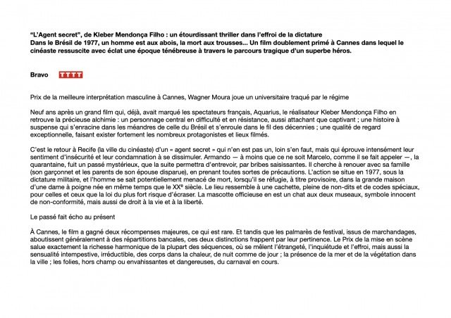 Critique l'agent secret ( télérama ) 2/2