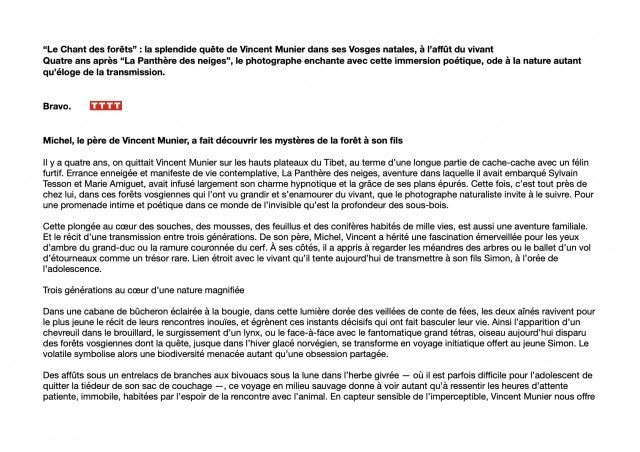 Critique le chant des forêts ( télérama ) 1/2