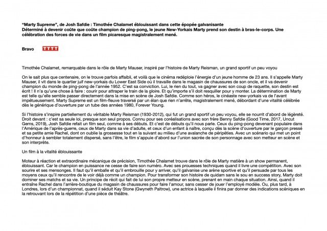Marty supreme 1/2 ( télérama )